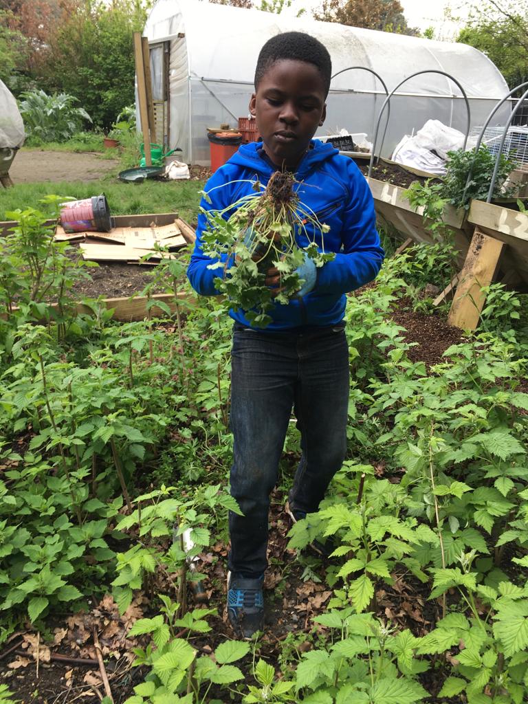 One of the day’s highlights was the enthusiastic help from the junior members of the team. They were eager to pitch in with the work and even enjoyed studying the worms in the garden.